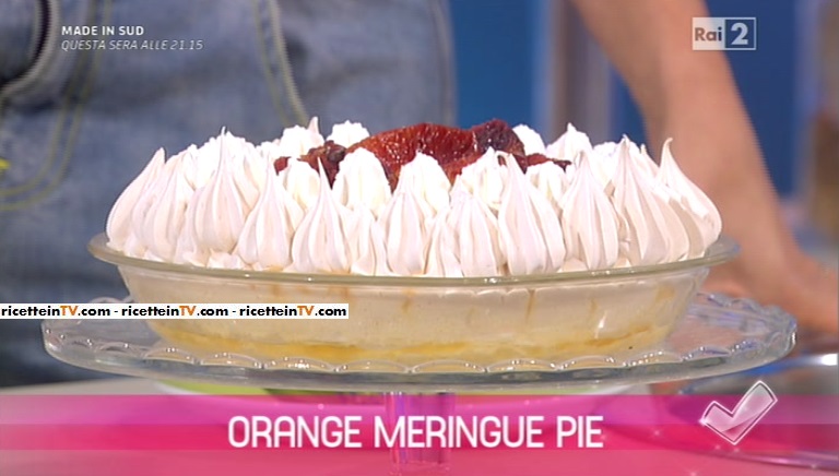 Per la crema all’arancia: privare le arance della buccia, dividerle in spicchi e tagliarli a metà. A bagnomaria, mescolare i tuorli con lo zucchero. Aggiungere le scorze di arance, di limone, il succo di limone e pizzico di sale. Togliere la crema dal fuoco quindi unire gli spicchi di arancia. Lasciar raffreddare in frigo per 10-15 minuti. Nel frattempo, montare la panna. Unire la panna alla crema all’arancia: attenzione, se lo facciamo quando è calda, la panna si smonta all’istante. Versare il composto all’interno della conchiglia di meringa quindi lasciar riposare in frigorifero per una notte. Decorare la torta con la panna montata zuccherata e gli spicchi d’arancia.