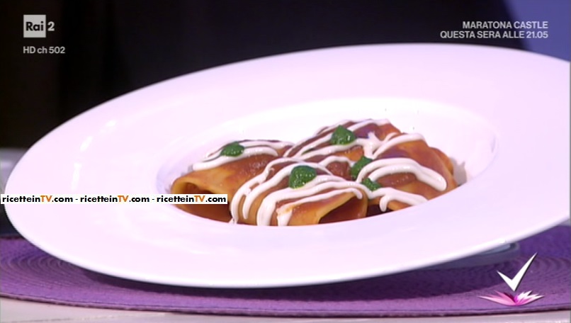 - 500 g paccheri, 500 g costina di maiale, 1 Kg muscolo di manzo, 3 kg pomodori pelati, 1 cucchiaino di concentrato di pomodoro, 100 g provolone del monaco, 1 bicchiere di latte, gelatina in fogli, 1 mazzetto di rucola, 2 carote, 2 gambi di sedano, 3 foglie di alloro, 1 cipolla, 1 bicchiere di vino rosso, farina, olio evo