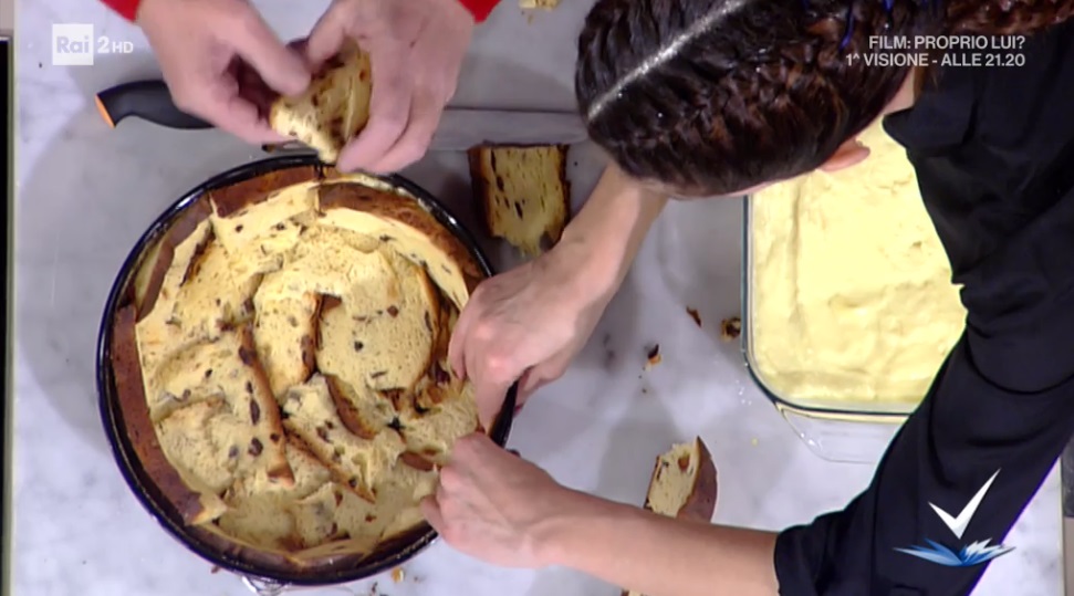 - 1 panettone da 750 g, 60 g marmellata di arance, 60 g cioccolato fondente, 50 g zucchero di canna, 1 noce di burro
