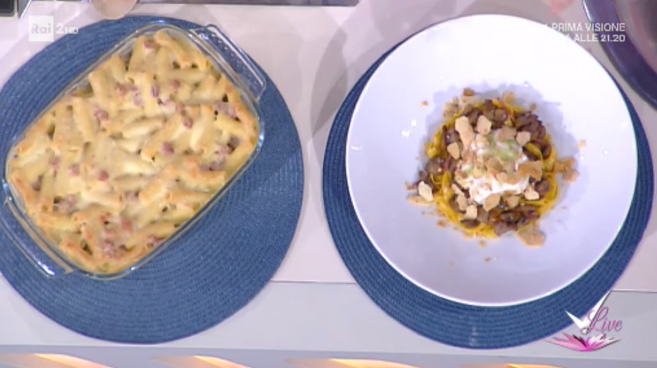 - 400 g tagliatelle, 200 g funghi champignon, 200 g prosciutto cotto, 200 g piselli, 100 g formaggio grattugiato, 2 bicchieri di latte, 100 g farina, 100 g burro, 1 cipolla bianca, pepe, sale, olio evo
