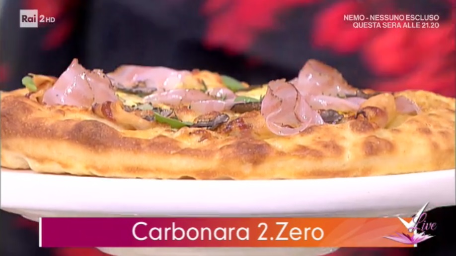 Il tutor Gianfranco Iervolino, protagonista dello spazio dedicato alla cucina, all’interno del programma condotto da Bianca Guaccero su Rai2, Detto Fatto, ha proposto la pizza carbonara 2.zero. Di seguito ingredienti e procedimento.