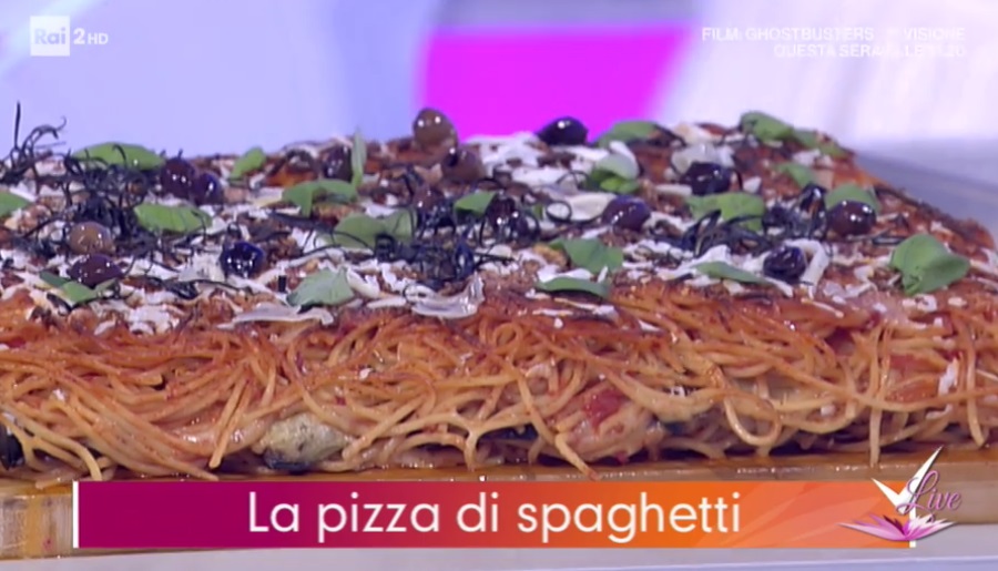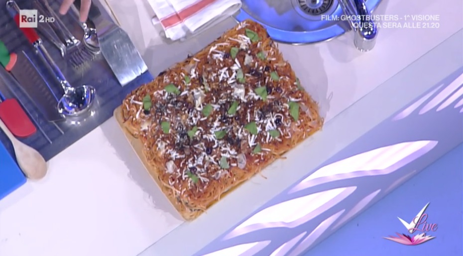 Foderiamo una teglia rettangolare con la carta forno. Formiamo sulla base uno strato di spaghetti (la metà). Disponiamo sopra le melanzane fritte. Copriamo le melanzane con la scamorza affumicata a fette sottili. Copriamo il tutto con gli spaghetti rimasti e spolveriamo con abbondante ricotta salata o parmigiano. Inforniamo a 200° fino a gratinatura completa.
