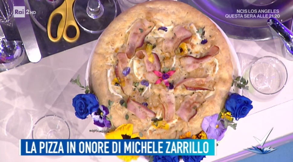 Cuociamo in forno preriscaldato a 250° per circa 15 minuti. Nel frattempo, facciamo diventare croccante il guanciale affettato in padella, con timo e maggiorana. All’uscita dal forno, finiamo la pizza con il guanciale croccante e fiori eduli a piacere.