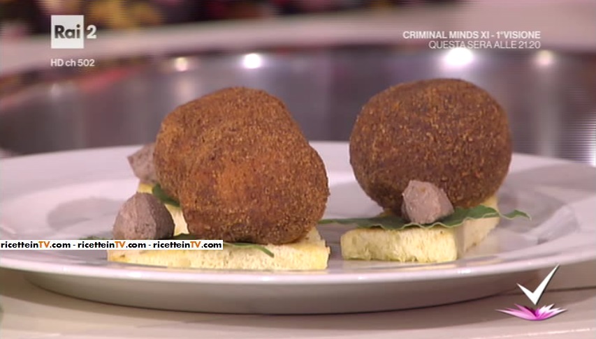 Per le polpette: impastiamo il macinato di pollo con il patè, le uova, il pane ammollato e ben strizzato. Con il composto ottenuto, formiamo le polpette, che passiamo nel pangrattato e, quindi, friggiamo nell’olio di semi.