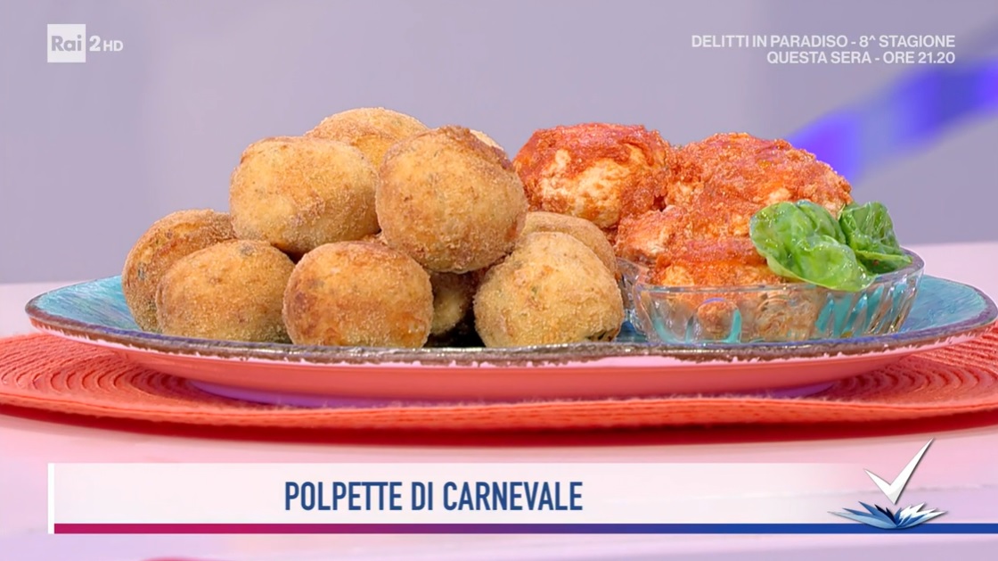 La tutor Cettina Latella, protagonista dello spazio dedicato alla cucina, all’interno del programma condotto da Bianca Guaccero su Rai2, Detto Fatto, ha preparato le polpette di Carnevale. Di seguito ingredienti e procedimento.