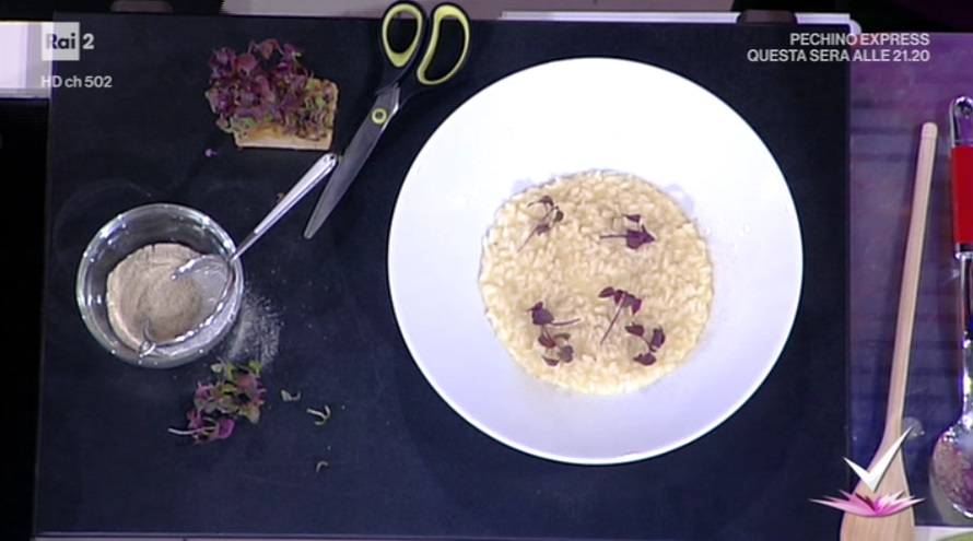 A cottura del riso ultimata, uniamo la purea di mele, il formaggio grattugiato e l’olio. Mantechiamo a fuoco spento. Serviamo spolverando la superficie del riso con abbondante polvere di castagne