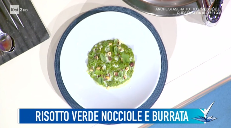 Il nuovo tutor Roberto Di Pinto, protagonista dello spazio dedicato alla cucina, all’interno del programma condotto da Bianca Guaccero su Rai2, Detto Fatto, ha preparato il risotto verde. Di seguito ingredienti e procedimento.