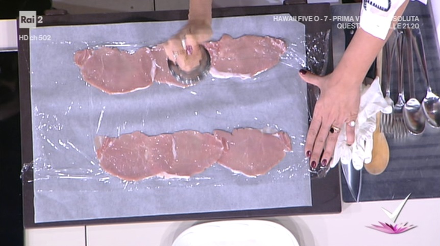 Copriamo con la pellicola le fettine di lonza e le battiamo con un batticarne, in modo da assottigliarle. Le condiamo con sale ed olio e le passiamo nella mollica di pane grattugiata insieme al prezzemolo ed alla menta. Otterremo un bel colore verde brillate.