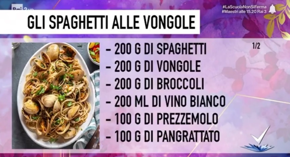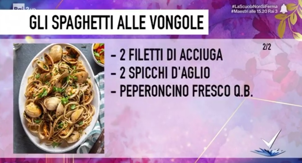 Il tutor Matteo Torretta, protagonista dello spazio dedicato alla cucina, all’interno del programma condotto da Bianca Guaccero su Rai2, Detto Fatto, ha dato la ricetta degli spaghetti alle vongole con crema di broccoli. Di seguito ingredienti e procedimento.