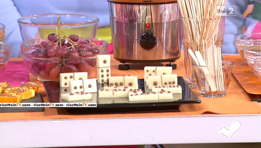 Il tutor Mirco Della Vecchia, protagonista dello spazio dedicato alla cucina, all’interno del programma condotto da Caterina Balivo su Rai2, Detto Fatto, ha proposto gli spiedini di frutta e domino al cioccolato. Di seguito ingredienti e procedimento.