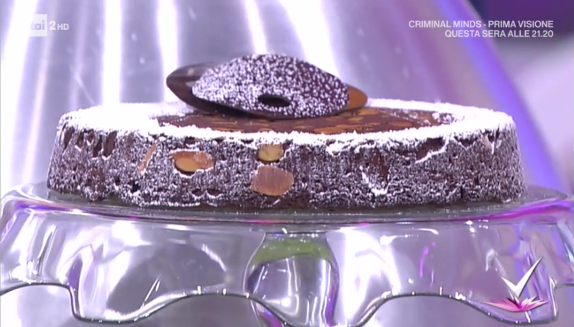 A parte, montiamo a neve gli albumi con lo zucchero semolato (50 g). Incorporiamo delicatamente al composto al cioccolato, mescolando dal basso verso l’alto. Trasferiamo l’impasto in una tortiera del diametro di 20-22 cm ben imburrata. Volendo, per rendere più bella la torta, possiamo imburrare la tortiera e distribuire casualmente delle lamelle di mandorle, quindi mettiamo l’impasto all’interno. Inforniamo a 170° per 35 minuti. Lasciamo intiepidire nello stampo per 15 minuti prima di sfornare.