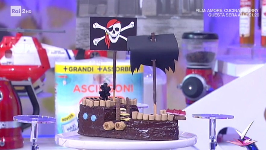 torta galeone di Massimo Pacelli e GiustinaLa tutor e nonna all’avanguardia Giustina ha assistito il baby pasticcere Massimo Pacelli, protagonista dello spazio dedicato alla cucina, all’interno del programma condotto da Bianca Guaccero su Rai2, Detto Fatto, per preparare la torta galeone. Di seguito ingredienti e procedimento.