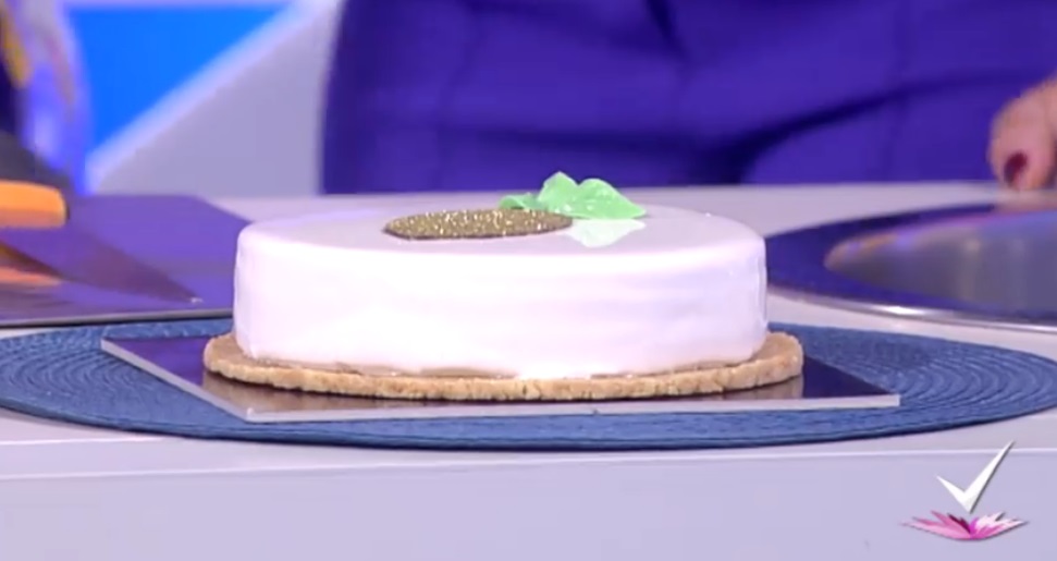 Versiamo la glassa sulla mousse ben congelata, facendo colare via l’eccesso. Spalmiamo la base con della marmellata di limone e posizioniamo sopra la mousse glassata.