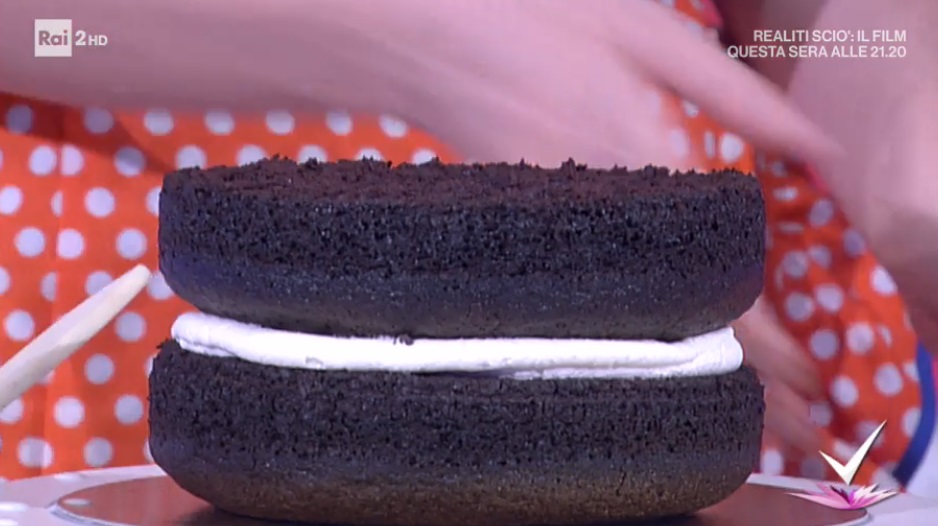 Tagliamo il pan di Spagna in due parti, oppure ne prepariamo due, dividendo l’impasto in due teglie. Bagniamo il primo strato di torta con un po’ di latte zuccherato. Formiamo sopra uno strato di crema e distribuiamo le gocce di cioccolato. Copriamo con l’altra metà della torta e la bagniamo ancora con del latte. Copriamo tutta la torta con la crema rimasta.