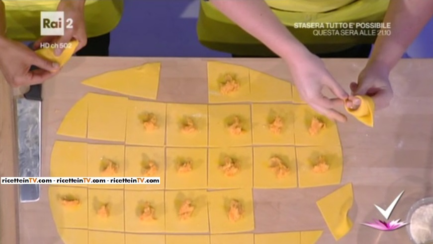 tortellacci2Il tutor Beniamino Baleotti, protagonista dello spazio dedicato alla cucina, all’interno del programma condotto da Caterina Balivo su Rai2, Detto Fatto, ha proposto i tortellacci di zucca. Di seguito ingredienti e procedimento.