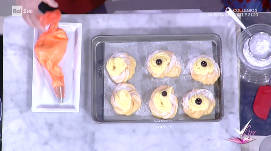 La tutor e nonna all’avanguardia Giustina, protagonista dello spazio dedicato alla cucina, all’interno del programma condotto da Bianca Guaccero su Rai2, Detto Fatto, ha dato la ricetta delle zeppole di San Giuseppe. Di seguito ingredienti e procedimento.