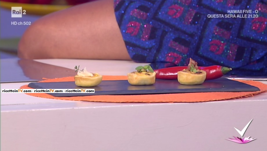 Per la mini quiche ai formaggi: tagliamo a cubetti piccoli il taleggio e la provola. Posizioniamo i formaggi alla base dei gusci di brisèe. Copriamo con l’appareil (la crema di uova e latticini) e spolveriamo con il parmigiano. Inforniamo a 180° per 12 minuti.