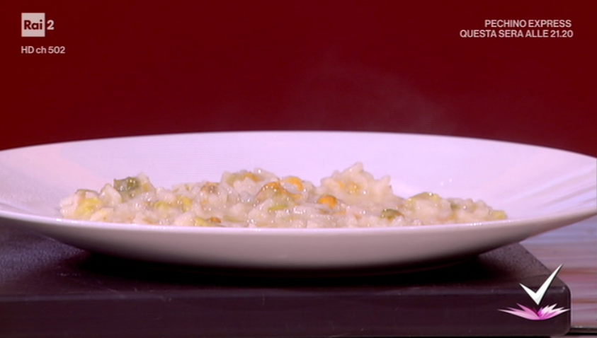 - Risotto ai fiori di zucca: 300 g riso carnaroli, 30 fiori di zucca, 1 l brodo di carne, 1 cucchiaio di cipolla tritata, 1 spicchio d’aglio tritato, 20 g formaggio grana stravecchio grattugiato, 50 g vino bianco secco, 40 g burro, 60 ml panna fresca, 2 cucchiai di olio evo, sale integrale