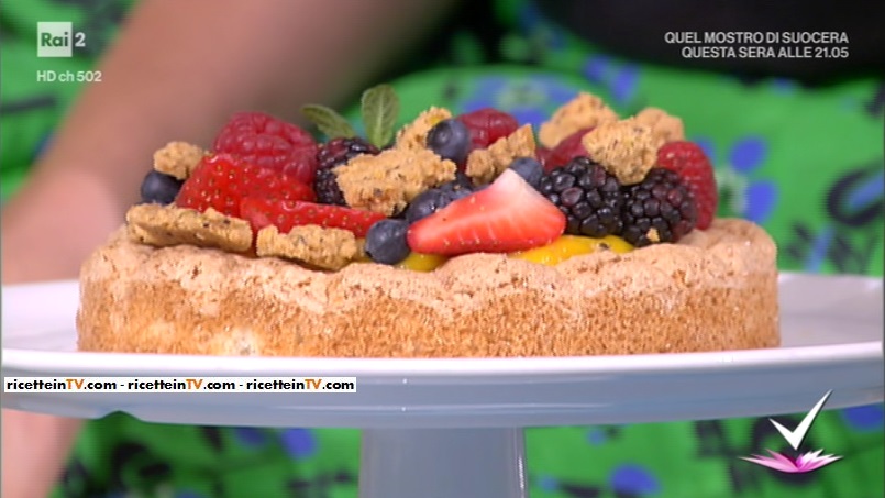 Per la decorazione: sulla base fredda, formiamo uno strato di crema al limone. Copriamo con la frutta e finiamo con le briciole di crumble.