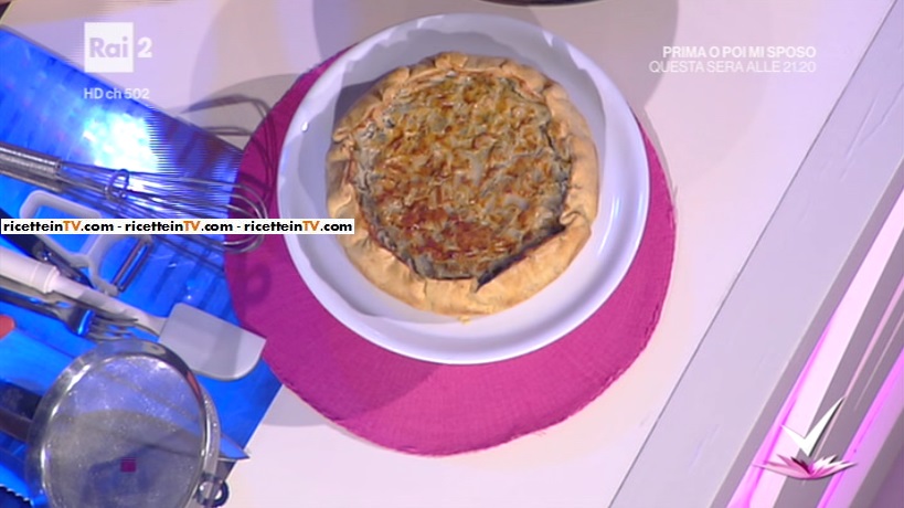 Sistemiamo il disco di pasta sfoglia integrale già pronta all’interno di una tortiera, mantenendo la carta forno. In una ciotola, battiamo gli albumi con sale, pepe ed una grattata di noce moscata. Uniamo la robiola e mescoliamo. Quindi, aggiungiamo i cardi tritati, i topinambur saltati, il pecorino ed il rosmarino. Mescoliamo per bene e trasferiamo all’interno del guscio di sfoglia.