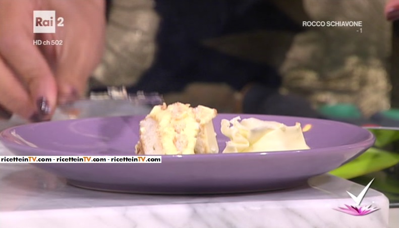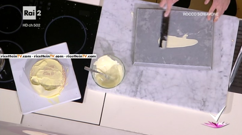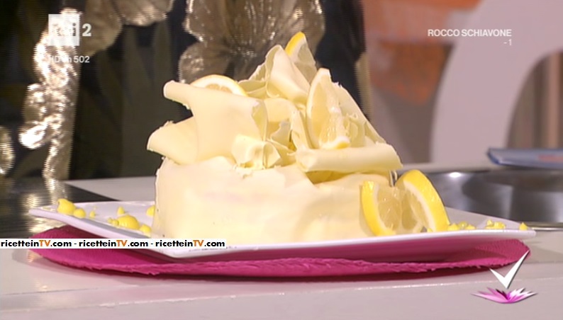 Per la decorazione: alterniamo gli strati di meringa alle mandorle alla crema al limone. Decoriamo con il velo da sposa, ovvero delle lastrine di cioccolato bianco. Per ottenerle, dobbiamo mettere in freezer una teglia. Intanto, sciogliamo il cioccolato bianco e lo facciamo intiepidire un po’. Ne coliamo una piccola quantità sulla teglia ghiacciata e, immediatamente, lo spatoliamo, in modo da ottenere un foglio sottilissimo. Lasciamo pochi secondi (3-4), quindi con la spatolina stacchiamo il foglio di cioccolato e lo applichiamo ai lati della torta.