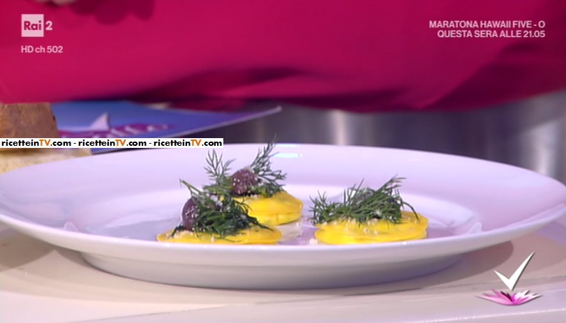 - Per 4 persone: 200 g pasta fresca, 6 tuorli, 200 g farina, 100 g ricotta, 50 g mozzarella di bufala, 50 g grana, 30 g cicoria, 4 olive nere, 1 rametto di menta, aneto e maggiorana, sale
