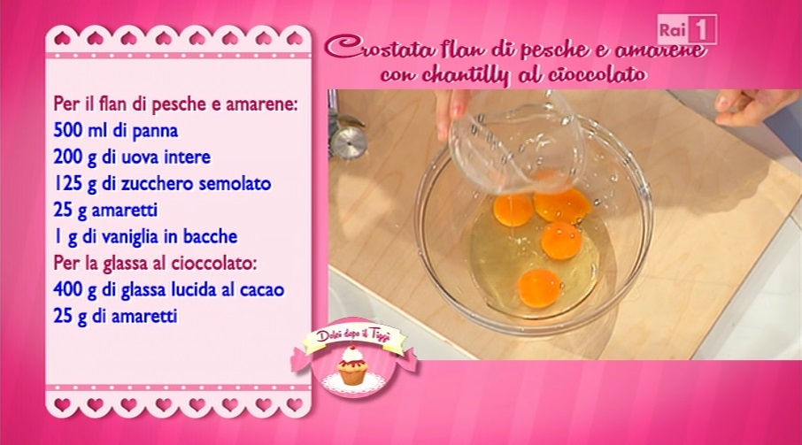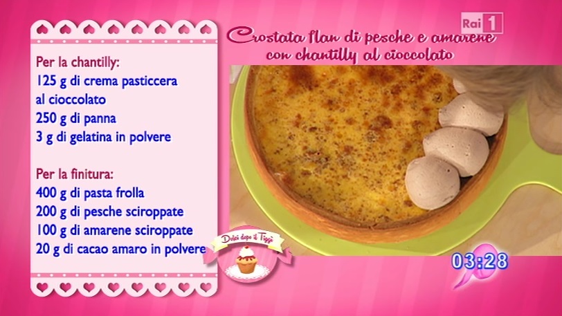 La ricetta della crostata flan di pesche e amarene con crema chantilly al cioccolato di Luca Montersino del 24 ottobre 2014 – Dolci dopo il tiggì
