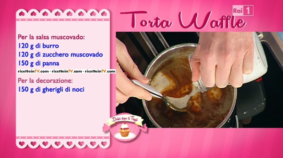 Nella puntata odierna di Dolci dopo il tiggì, il programma culinario di Antonella Clerici dedicato al momento ‘più dolce‘ del pasto, in onda subito dopo il Tg1 delle 13:30, la ‘storica‘ cuoca de La prova del cuoco Anna Moroni ha realizzato la torta waffle. Ecco la ricetta.