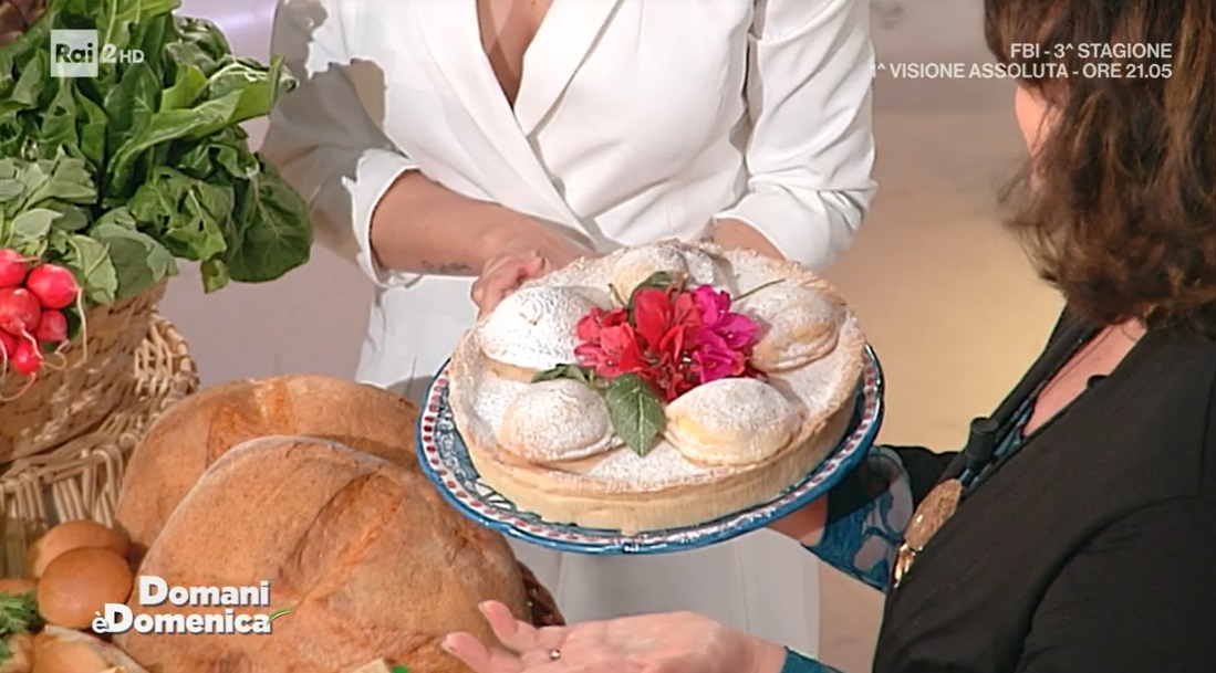 torta sfogliatella di Angelica SepeLa cuoca ‘canterina’ Angelica Sepe, protagonista dello spazio dedicato alla cucina all’interno del programma condotto di Rai2, Domani è domenica, in onda ogni sabato, dalle 12:00 alle 13:00, ha proposto la torta sfogliatella. Di seguito ingredienti e procedimento.