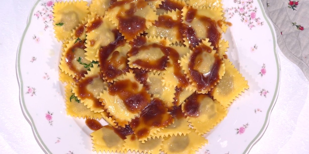 Tiriamo la sfoglia sottile e disponiamo sopra delle noci di ripieno. Ripieghiamo la sfoglia sul ripieno, facendola ben aderire. Con la rotella, ritagliamo gli agnolotti. Li cuociamo in acqua bollente e salata.
