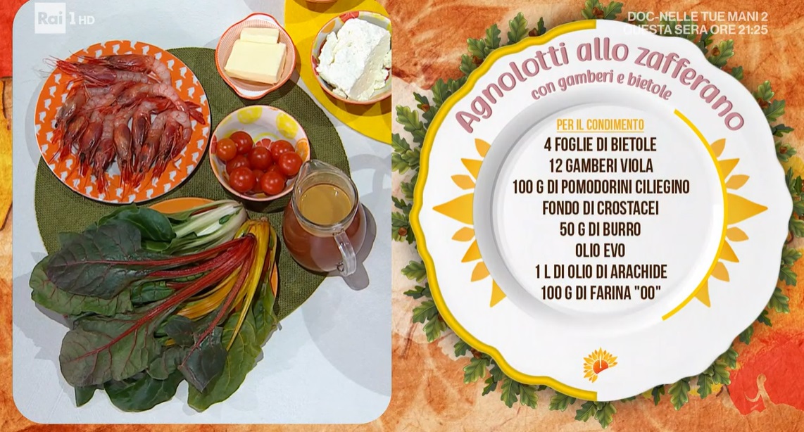 - Pasta: 150 g farina 00, 200 g semola, 2 uova, zafferano