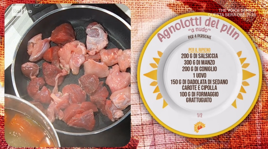 Fabrizio Rebollini, accompagnato dalla sorella Serena, porta la montagna in cucina, con le sue tradizioni ed i suoi piatti ruspanti. Oggi, in particolare, Fabrizio prepara un primo piatto dal nome curioso: agnolotti del plin a nudo.
