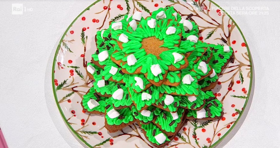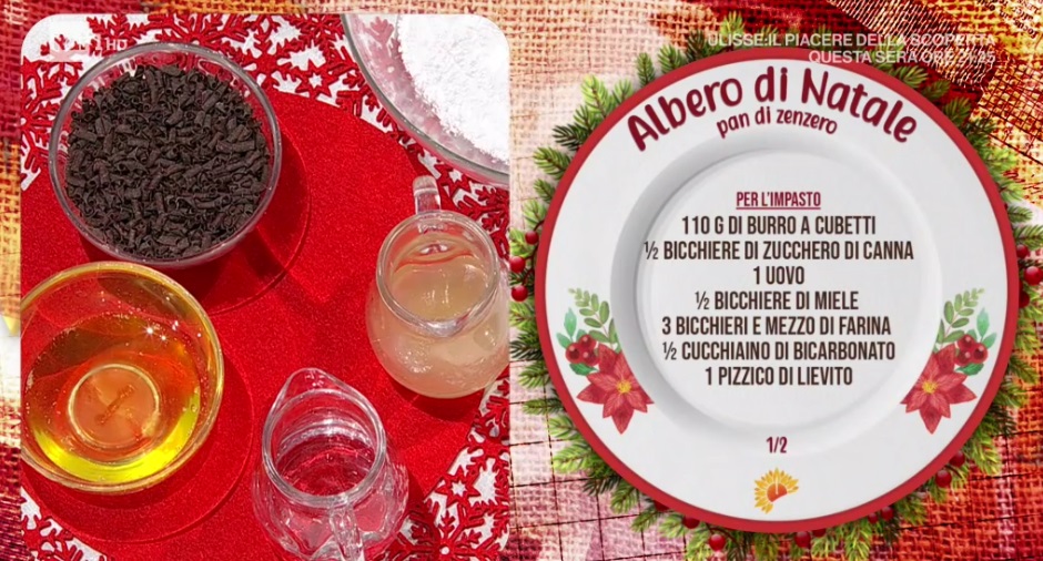 Sara Brancaccio, la cuoca ‘nemica’ della bilancia, prepara uno dei suoi dolcetti, misurando gli ingredienti con bicchieri o cucchiai. Oggi, in particolare, vediamo come preparare l’albero di Natale pan di zenzero.
