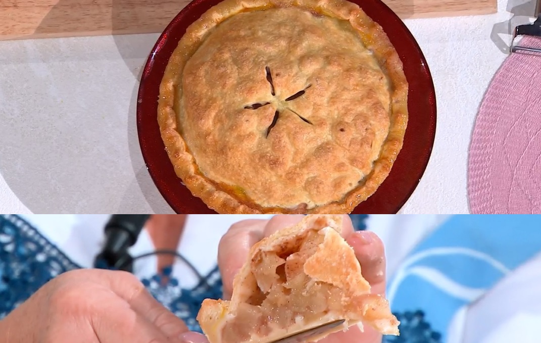 Una zia Cri particolarmente allegra, oggi, gironzola tra le cucine, incalzata dall’amico Persegani e ‘stuzzicata’ dal super ospite di questa puntata, il divo di Beautiful. Per festeggiare il giorno del ringraziamento, zia Cri prepara un dolce americano, la american apple pie, la torta di mele americana.