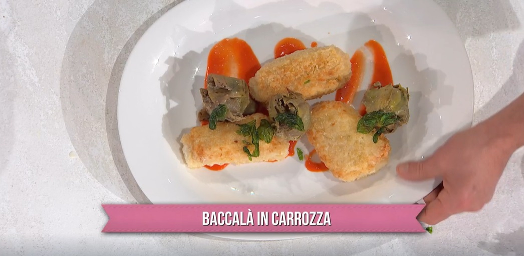 Nella giornata dedicata ai complimenti, arrivano in cucina due cuochi che, di complimenti, sembrano non farsene molti, ovvero Mauro e Mattia Improta, padre e figlio. I due cuochi napoletani, oggi, preparano un piatto della tradizione, a base di baccalà. Ecco il baccalà in carrozza.