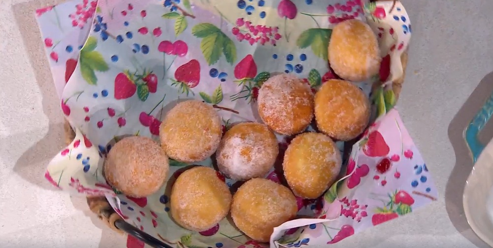 Li rotoliamo nello zucchero semolato e li farciamo con la confettura di lamponi o altre creme a piacere.