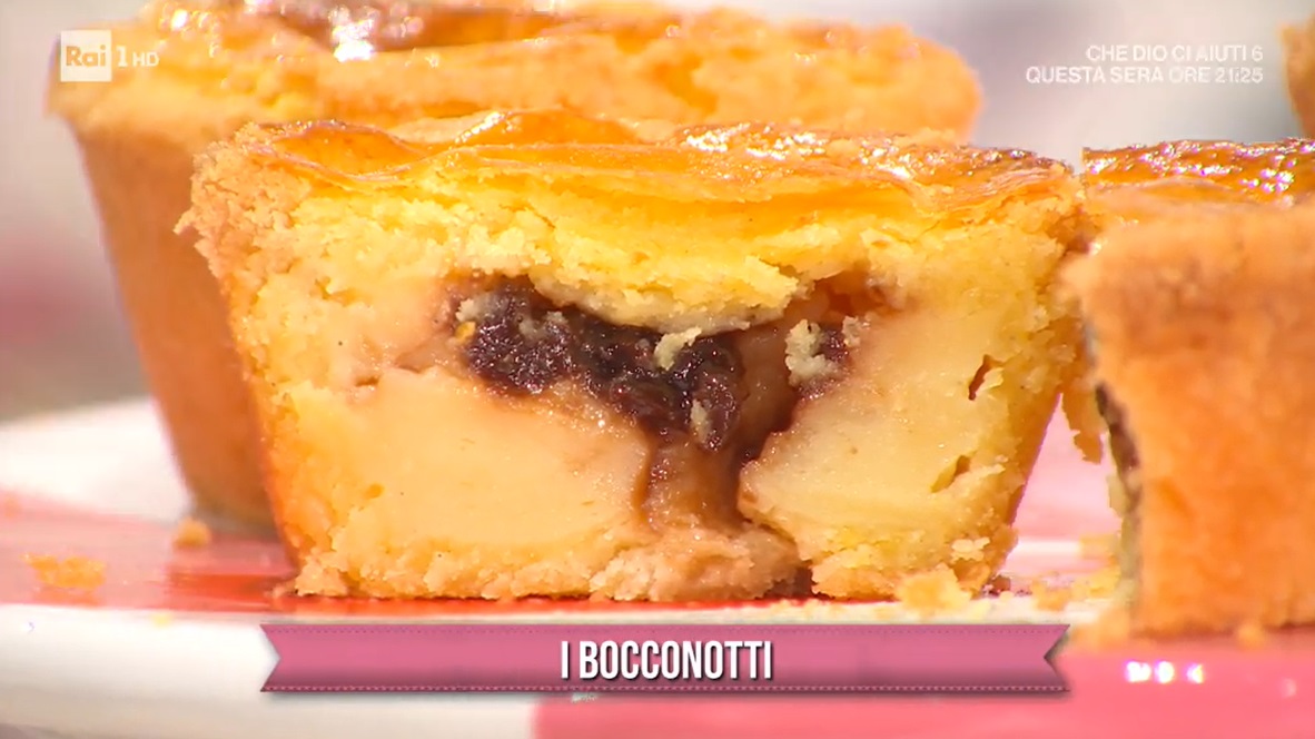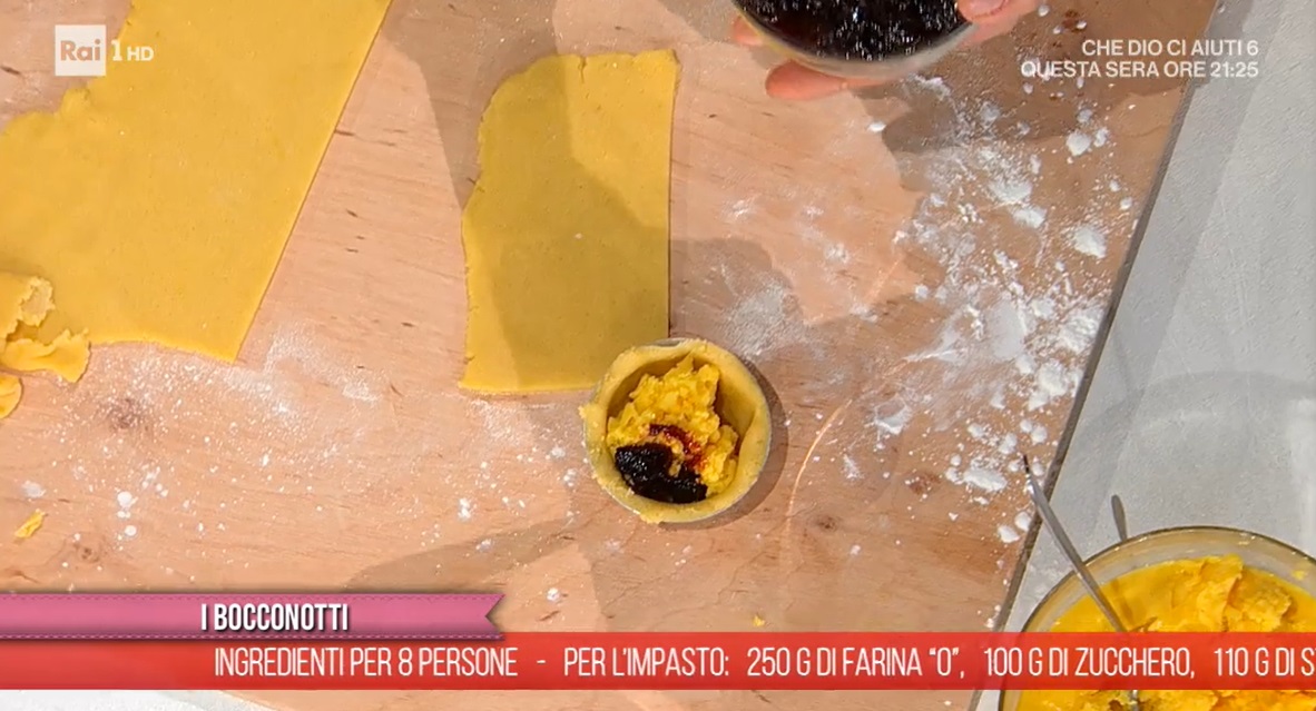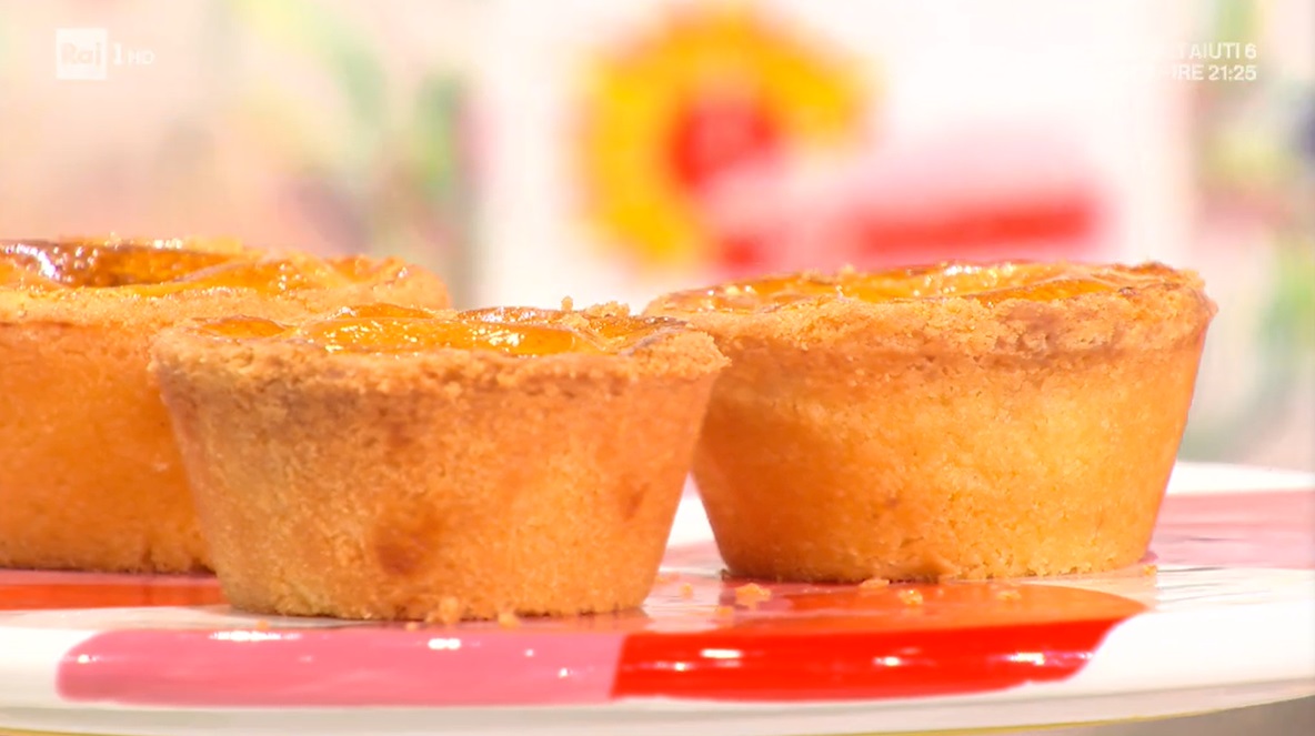 Stendiamo la frolla ad uno spessore di 2-3 mm. Ritagliamo dei dischi e li usiamo per foderare degli stampini monoporzione, vanno bene anche quelli di alluminio monouso. Farciamo con la crema pasticcera fredda ed un cucchiaino di confettura di ciliegie. Chiudiamo con un dischetto di frolla e sigilliamo bene i bordi. Spennelliamo la superfice con il tuorlo sbattuto e mettiamo a cuocere in forno preriscaldato a 170°, ventilato, per 18 minuti: Antonella consiglia di girare la teglia, a metà cottura. Lasciamo intiepidire, prima di sformarli.