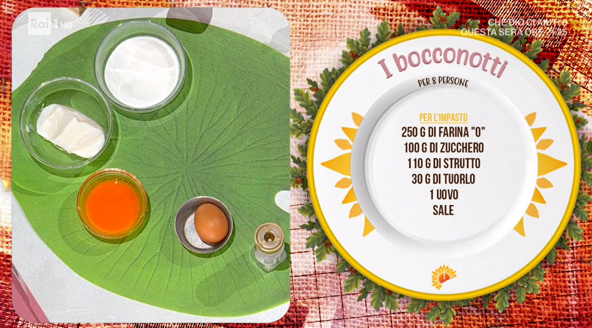 - Frolla: 250 g farina 0, 100 g zucchero, 110 g strutto, 30 g tuorlo, 1 uovo, sale