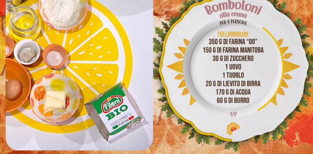 - Crema: 500 ml latte, scorza di limone, 140 g zucchero, 4 tuorli, 20 g amido di mais, 20 g amido di riso, sale
