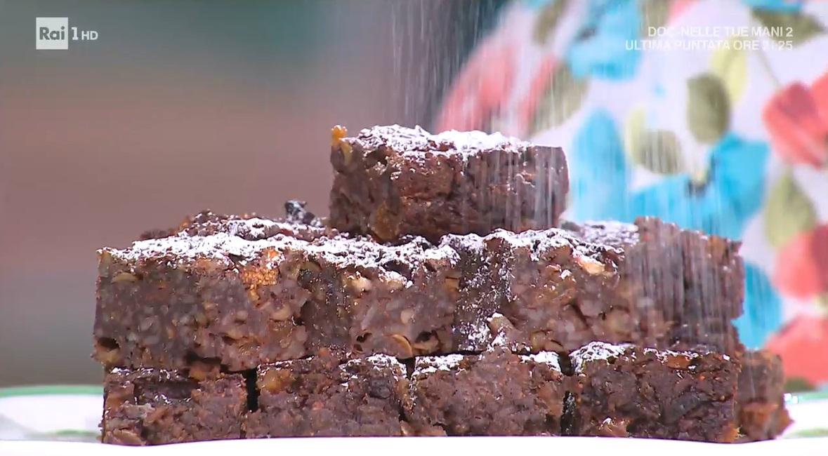 Sforniamo, lasciamo raffreddare e tagliamo a dadoni. Finiamo con zucchero a velo.