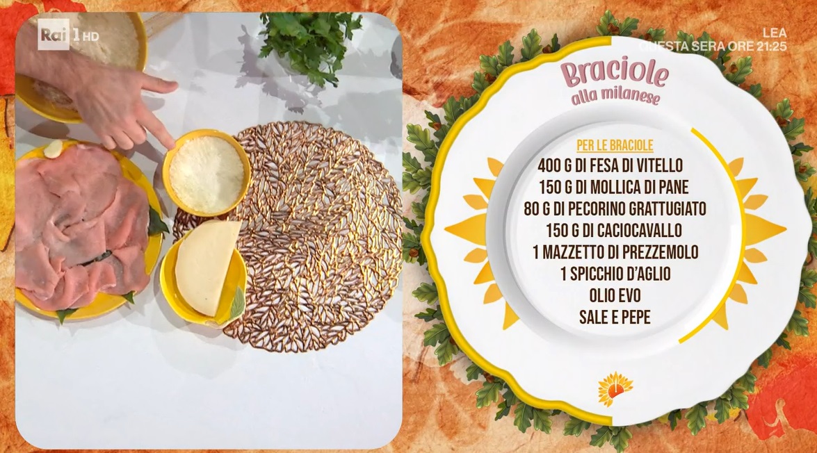 Dopo una lunga assenza, dovuta al Covid (se l’è preso e ne è uscito faticosamente), Fabio Potenzano torna nelle cucina di Rai1 a rappresentare la sua splendida Sicilia. Oggi, in particolare, il cuoco palermitano ci porta dalle parti di Messina, con un secondo piatto tipico della provincia siciliana. Ecco le braciole alla milanese.