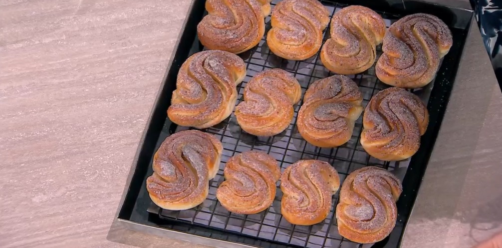 Cuociamo in forno caldo e statico a 220° per 15 minuti. Una volta sfornate, le spennelliamo con burro fuso e le intingiamo nello zucchero semolato aromatizzato con cardamomo in polvere.