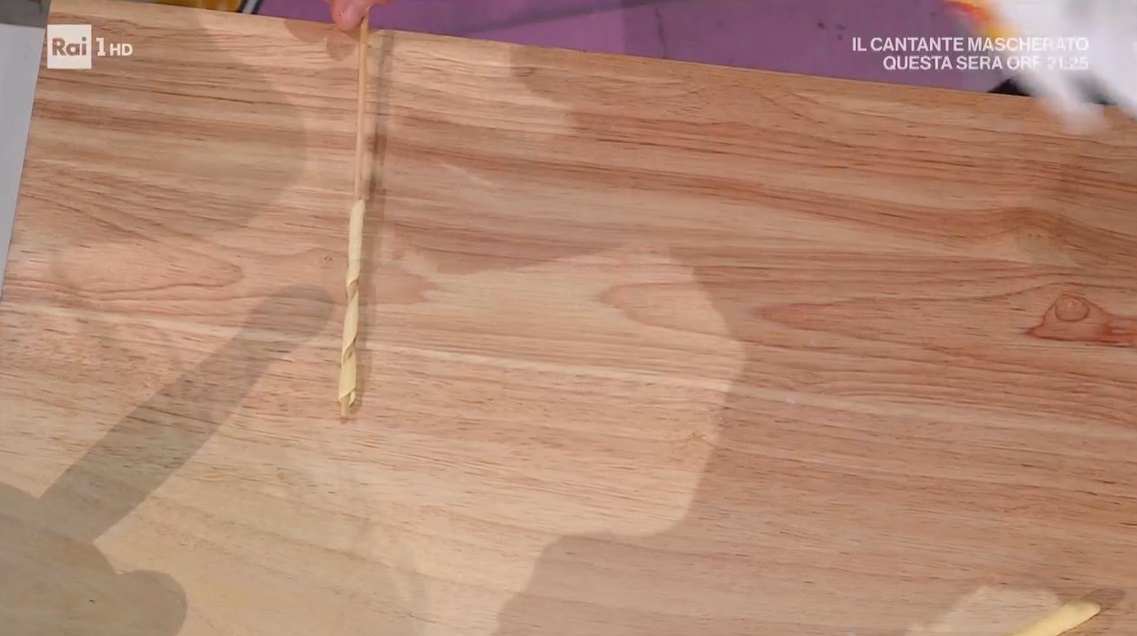 Per la pasta, lavoriamo la semola con l’acqua ed una presa di sale fino ad ottenere un panetto omogeneo e liscio. Avvolgiamo nella pellicola e lasciamo riposare almeno mezz’ora. Formiamo dei serpentelli sottili, che arrotoliamo intorno ad uno stecco da spiedino, schiacciando leggermente, fino ad ottenere la busiata. Possiamo comprarle già pronte.