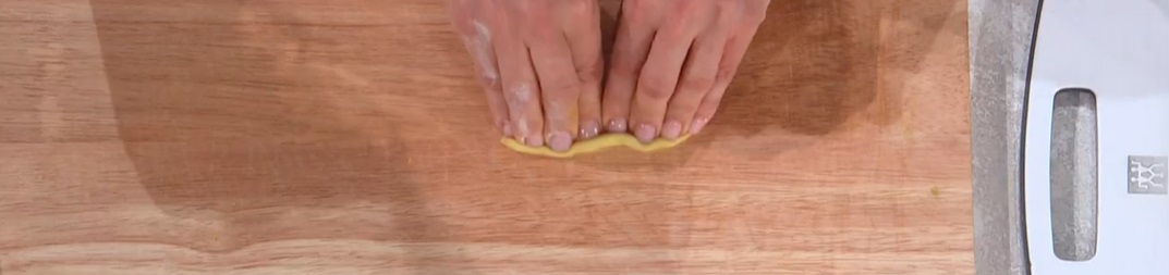 Formiamo dei serpentelli di impasto, sottili e lunghi circa 5-6 cm. Con entrambe le mani, schiacciamo il serpentello, strisciandolo sul tavolo: otterremo un maccheroncino cavo all’interno. Lessiamo in acqua bollente e salata per il tempo necessario.