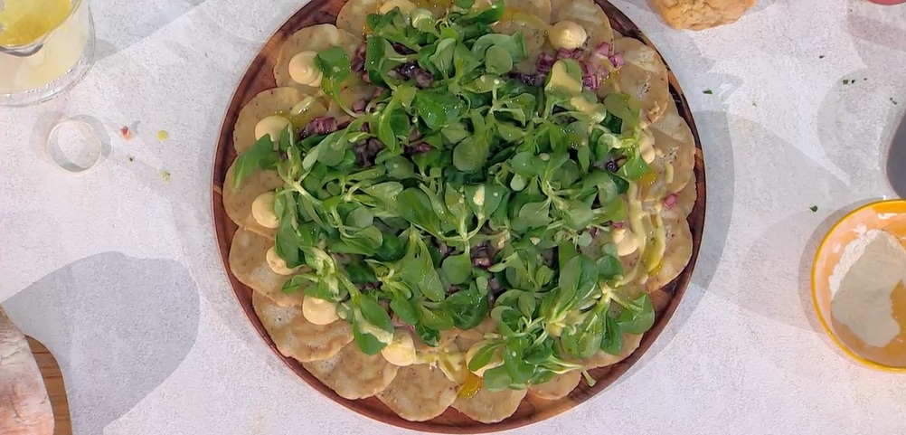 Torna nelle cucine del mezzogiorno Cristian Bertol. Il volto caro agli amici de La prova del cuoco ritrova Antonella per proporre uno dei suoi piatti di montagna, ovvero il carpaccio di canederli.