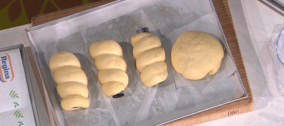 Cartocci o macallè: con l’impasto lievitato, formiamo dei serpentelli, che arrotoliamo intorno ai tubi per cannoli.