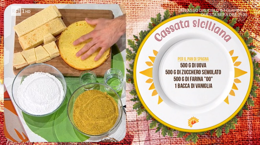 - Crema di ricotta: 1,5 kg ricotta di pecora, 500 g zucchero, 100 g gocce di cioccolato
