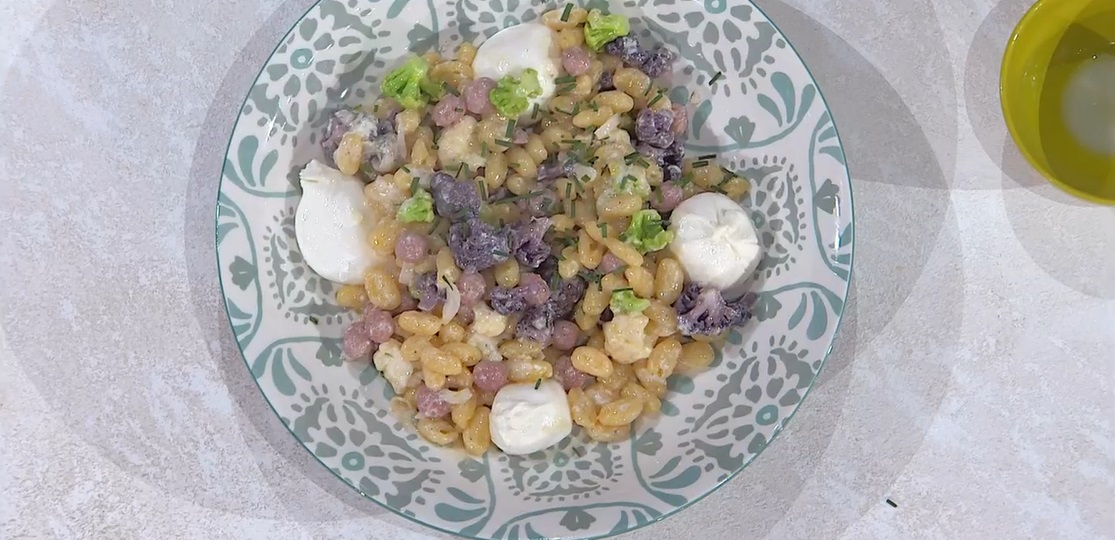 Un giro per l’Italia davvero speciale quello che oggi ci regala il mezzogiorno di Rai1, passando dalla Sicilia di Potenzano, alla Lombardia di Marsetti, l’Emilia di Persegani, fino ad arrivare alla Puglia di Antonella Ricci. E proprio quest’ultima, oggi, ci regala un primo piatto sciuè sciuè, i cavatelli salsiccia e burrata.