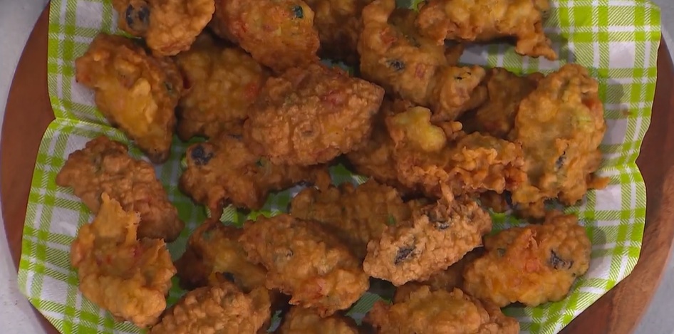 Pastella: in una ciotola, mettiamo le uova sgusciate, l’acqua e le sbattiamo con una frusta. Saliamo e pepiamo. Uniamo la farina, il bicarbonato e mescoliamo fino ad ottenere una pastella senza grumi. Uniamo tutte le verdure a dadini (crude), le olive a rondelle, i capperi, peperoncino a piacere e mescoliamo.