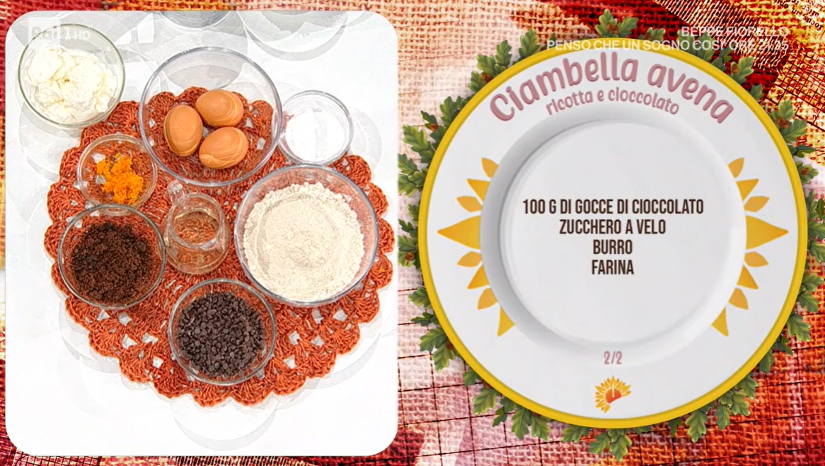 Inizio di settimana all’insegna della golosità e del buonumore, con la dolce Zia Cri. La cuoca romagnola inaugura il menu odierno preparando un dolce, sotto l’occhio vigile dell’ospite in collegamento skype. Ecco la ciambella avena ricotta e cioccolato.